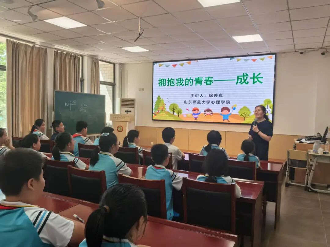 学校邀请山东师范大学徐夫真教授到校为五、六年级同学带来“拥抱青春期”主题讲座。徐教授用亲切专业的语言,深入浅出地讲解了成长过程中的情绪变化,以及情绪和认知的关系,并提供了实用的成长建议,帮助同学们以积极心态迎接成长挑战。