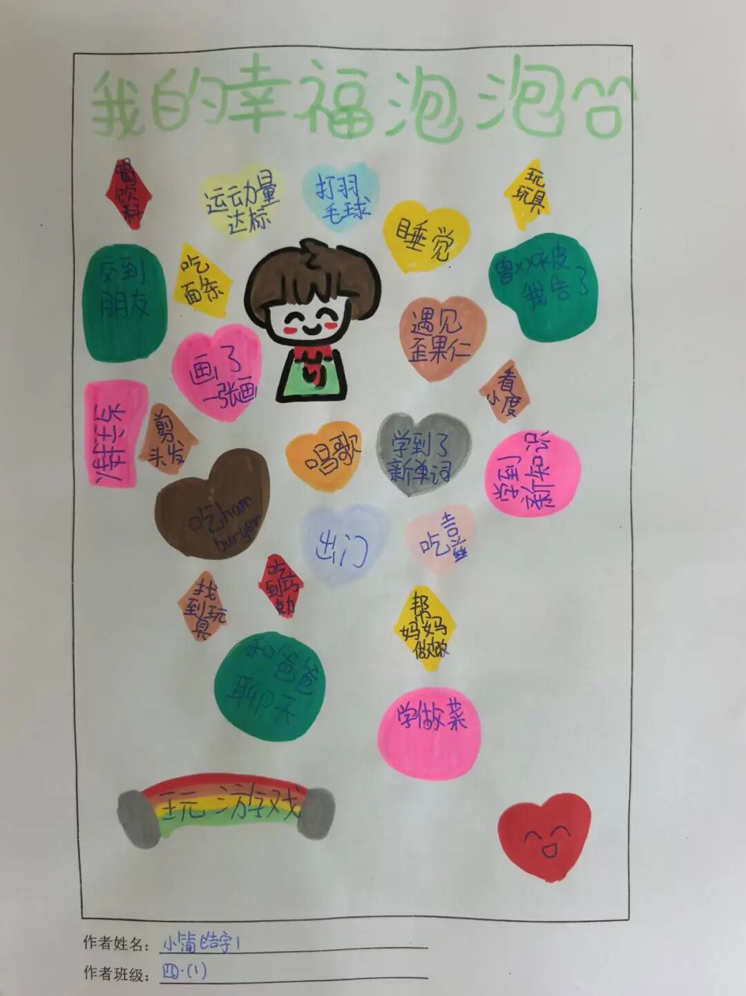 幸福藏在生活点滴中!四年级开展了“我的幸福泡泡”活动。同学们化身“幸福捕手”,细心观察并记录下日常生活中那些让他们感到快乐、满足、感恩的小确幸。一个个“幸福泡泡”汇聚成积极乐观的心态源泉。