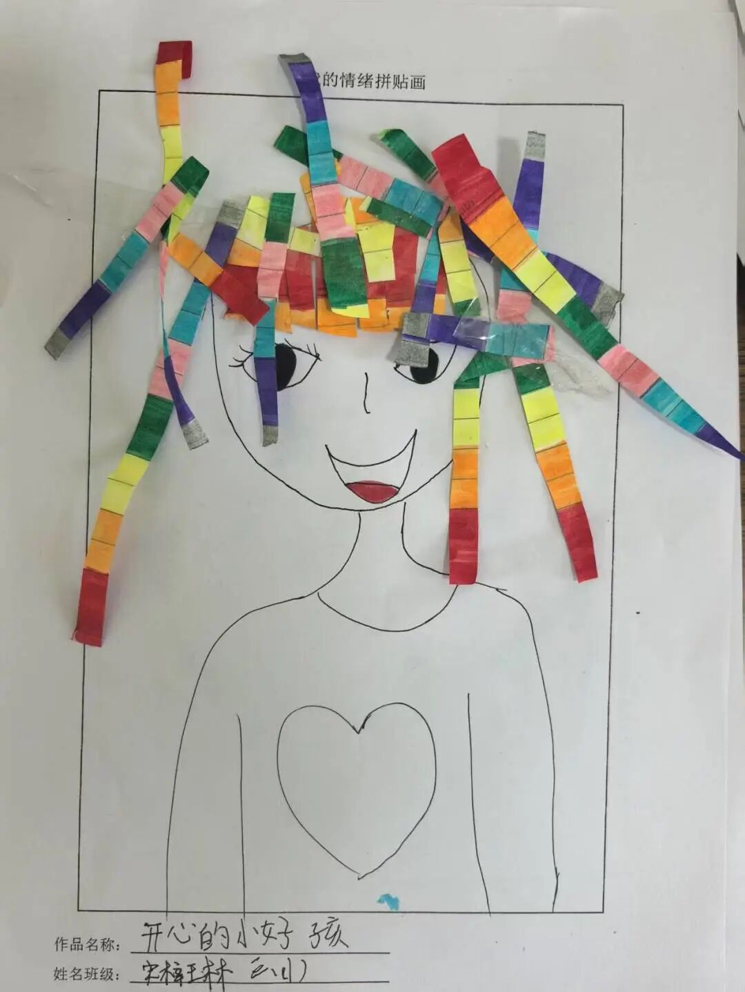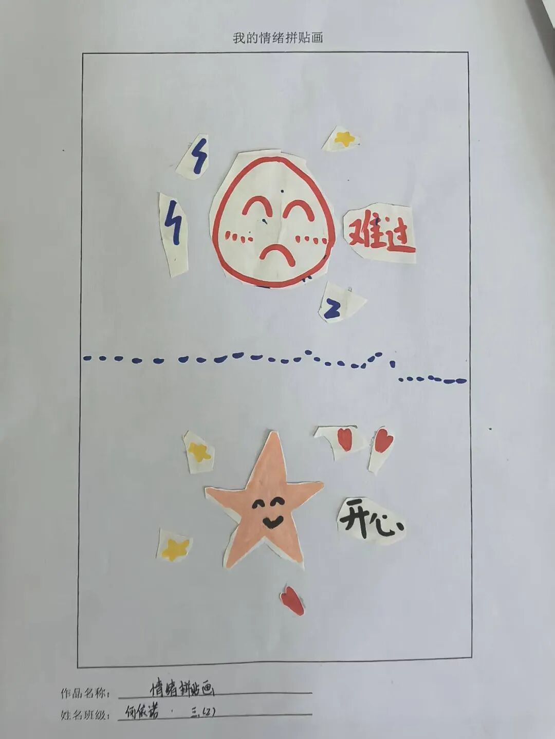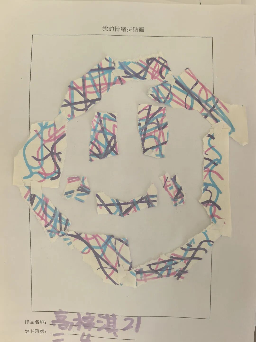三年级的同学们用自由涂鸦表达内心的喜怒哀乐,再通过撕、折、拼、贴等创意方式,将情绪涂鸦转化为一幅幅独特的“情绪拼贴画”。在动手创作中,孩子们认识及表达情绪,学习与情绪共处。