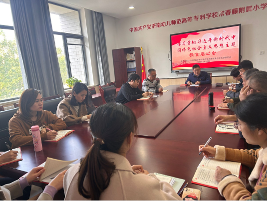 为深入学习贯彻习近平新时代中国特色社会主义思想,根据济南市教育局《关于深入开展学习贯彻习近平新时代中国特色社会主义思想主题教育的实施方案》精神,4月25日下午,中共济南幼儿师范高等专科学校常春藤附属小学党支部举行了学习贯彻习近平新时代中国特色社会主义思想主题教育动员会。 全体党员干部、积极分子参加了会议。会议由书记马清彪主持。 在会议上,马清彪书记传达了《济南幼高专常春藤附属小学学习贯彻习近平新时代中国特色社会主义思想主题教育实施方案》,深刻阐述了这次主题教育的重大意义,明确了这次主题教育的总体要求、重点务,措施方法。