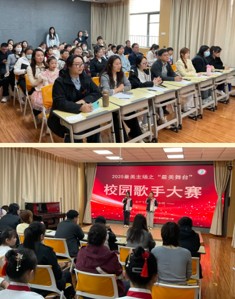 为丰富校园文化生活,展示学生艺术风采,我校于2025月4日9日下午隆重举行校园歌手大赛。经过初赛视频的层层选拔,最终来自全校的30组小歌手同台竞技,用歌声传递快乐,用旋律绽放梦想。 舞台闪耀:小歌手各展风采 在这场音乐盛宴中,选手们用歌声勾勒出一幅幅生动的画面,用音乐点燃了整个赛场。在舞台上,他们用自己独特的方式,诠释着音乐的魅力,低年级学生用稚嫩童声唱响纯真,高年级选手则以自信的台风展现成长魅力。